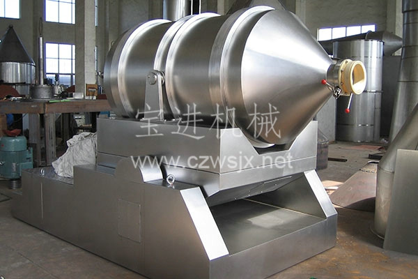 EYH二維混料機(jī)的轉(zhuǎn)筒可同時(shí)進(jìn)行二個(gè)運(yùn)動(dòng),一個(gè)為轉(zhuǎn)筒的轉(zhuǎn)動(dòng),另一個(gè)為轉(zhuǎn)筒隨擺動(dòng)架的擺動(dòng)。被混合物料在轉(zhuǎn)筒內(nèi)隨轉(zhuǎn)筒轉(zhuǎn)動(dòng)、翻轉(zhuǎn)、混合的同時(shí),又隨轉(zhuǎn)筒的擺動(dòng)而發(fā)生左右來回的摻混運(yùn)動(dòng),在這兩個(gè)運(yùn)動(dòng)的共同作用下,物料在短時(shí)間內(nèi)得到充分的混合。EYH二維混料機(jī)適合所有粉、粒狀物料的混合。