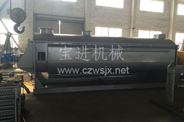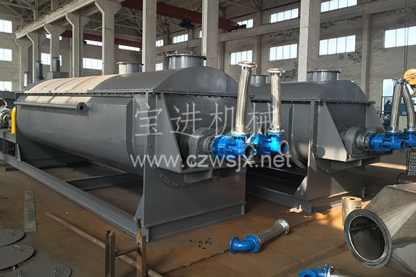 ● 通入冷卻介質(zhì),如水、冷卻鹽水等即可用來冷卻。如:使用于純堿行業(yè)的槳葉式?jīng)鰤A機,取代老式的空氣冷卻涼堿機,節(jié)省了能源及尾氣處理設(shè)備,降低了操作費用 ,還可用于鈦、鎳鐵合金粉及各種粉粒狀物料的冷卻。在單臺機里可以將物料從1000℃冷卻到小于40℃。