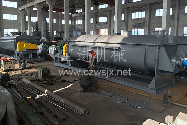 ● 用導(dǎo)熱油做熱介質(zhì),槳葉干燥機可完成低溫煅燒工作。如:二水硫酸鈣(Ca2SO4·2H2O)煅燒轉(zhuǎn)化為半水硫酸鈣(Ca2SO4·1/2H2O)。碳酸氫鈉(NaHCO3)經(jīng)煅燒 轉(zhuǎn)化為純堿(Na2CO3)等。